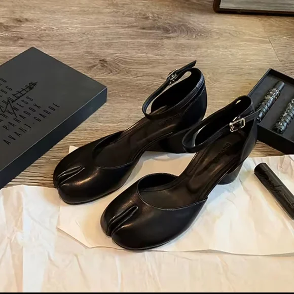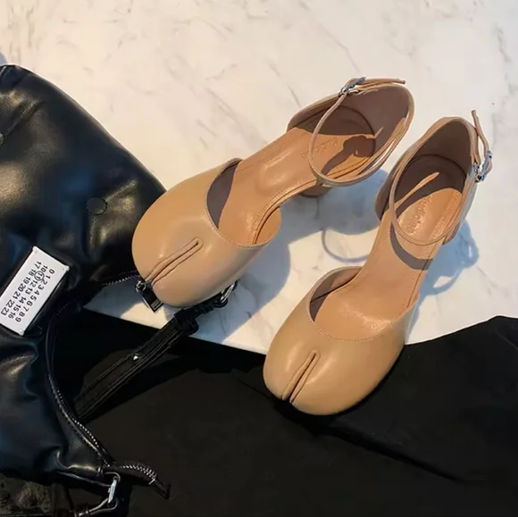 Modern Heels Pumps Women Round High HeelSquare Split Toe Pumps Shoes