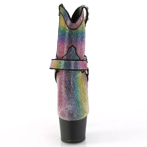 Platform Cowgirl Rainbow Rhinestone Ankle Boots