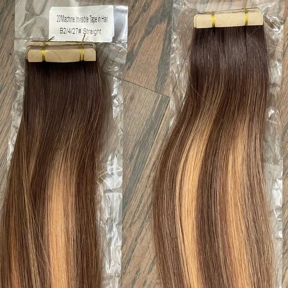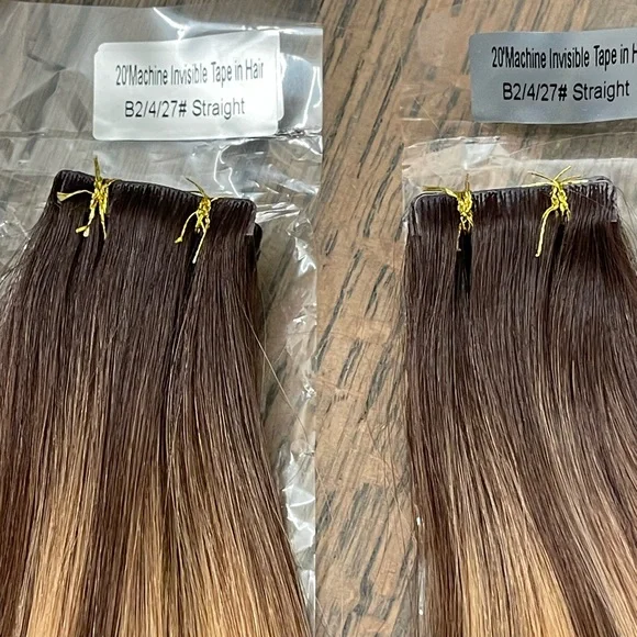 Brand new invisible tape in hair extensions. 40 pieces. 100 grams total. Unfortunately, these colors did not work with my hair and I was unable to return them. Pretty annoyed, not...