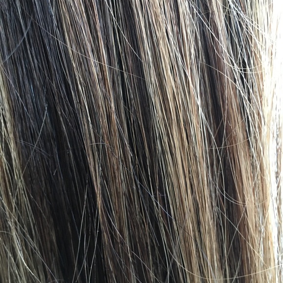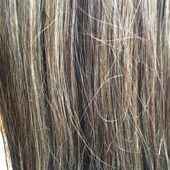 Wore them 1 time for a wedding they are brown with blonde highlights hair extensions with carry case!