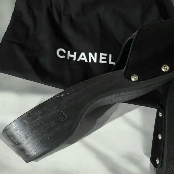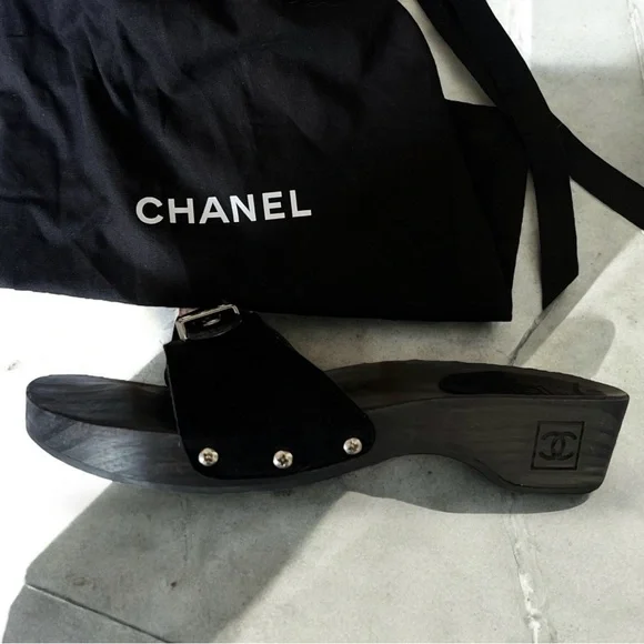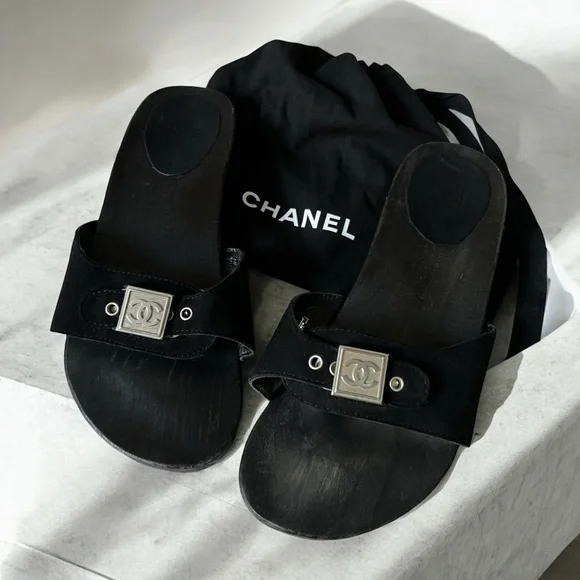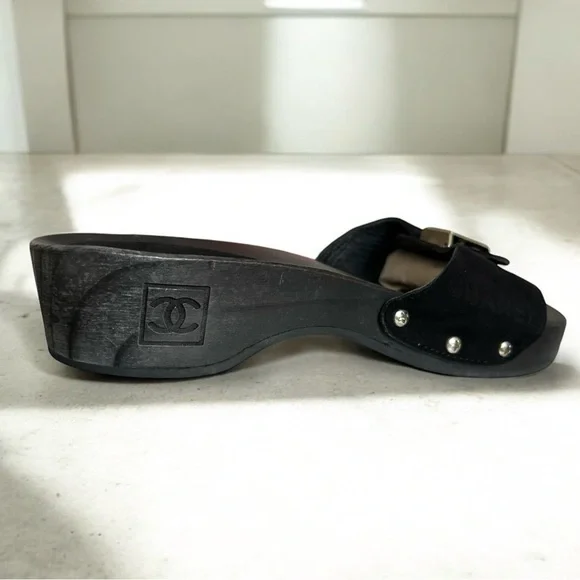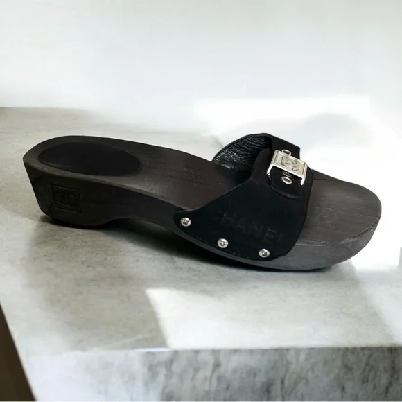 Vintage Suede Wooden Slip On Clog Logo Sandals