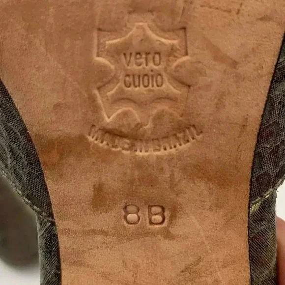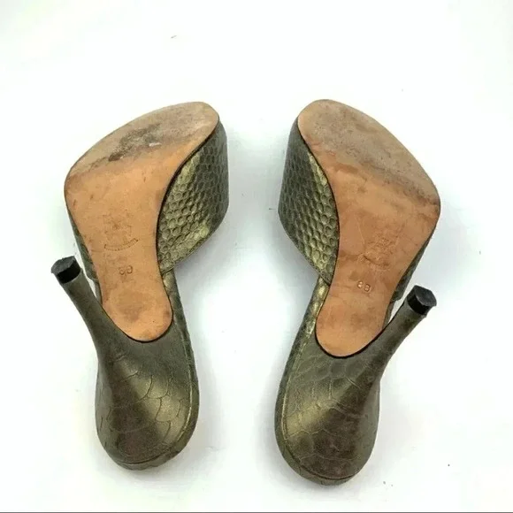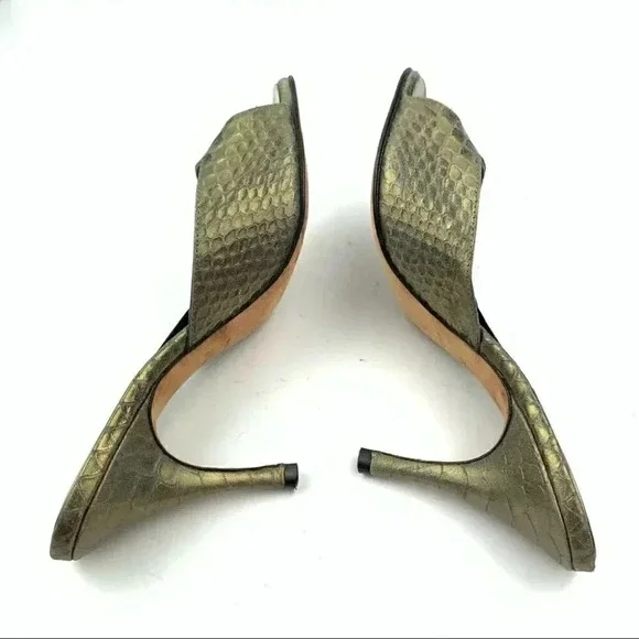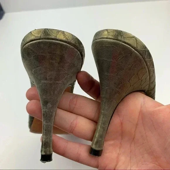 Bernardo womens Springolators heels size 8 gold metallic snakeskin print vintage 60s pinup VLVheel 4 leather solesMade in Brazil Pet free home Smoke free homeOffers welcome
