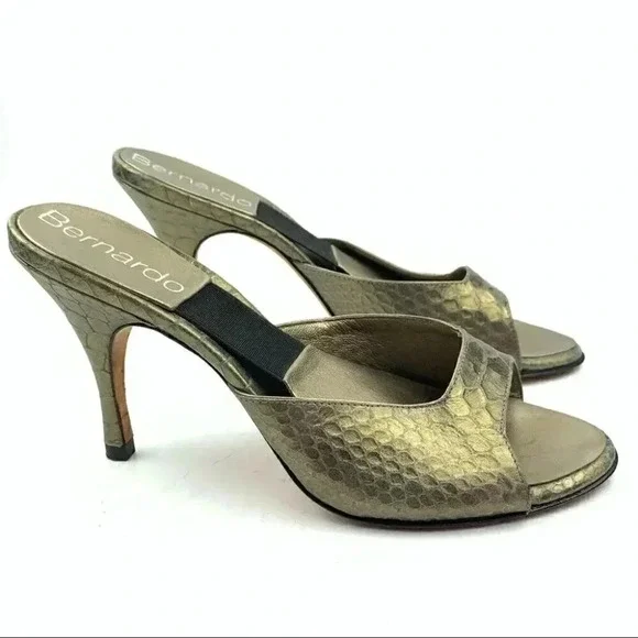 Bernardo Springolators heels 8 gold snake print