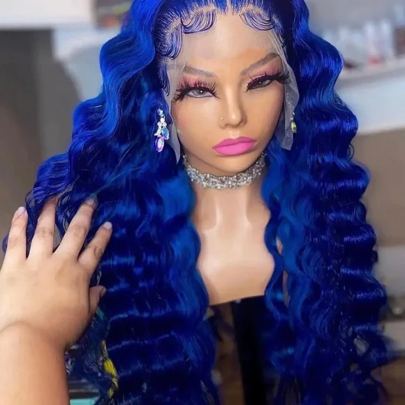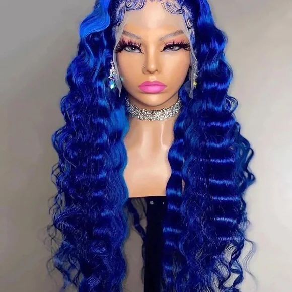 Material : 100% human hairStyle: deep WaveLace kind/ size :Transparent 13×4 lace frontalLength : 24inchColor: blueDensity: 180% densityQuality/grade : 12A grade, can be dyed,...