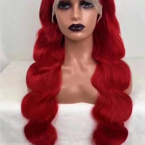 Material : 100% human hair Style: Body Wave Lace kind/ size :Transparent 13×4 lace frontal Length : 26inch Color: redDensity: 180% densityQuality/grade : 12A grade, can be dyed,...