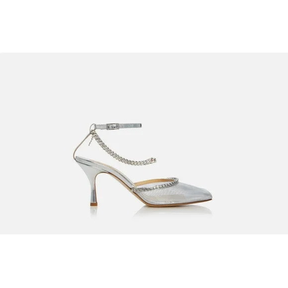 Nalebe Women Stellar Mesh Kitten Heel Pumps Silver Size 37.5 440060