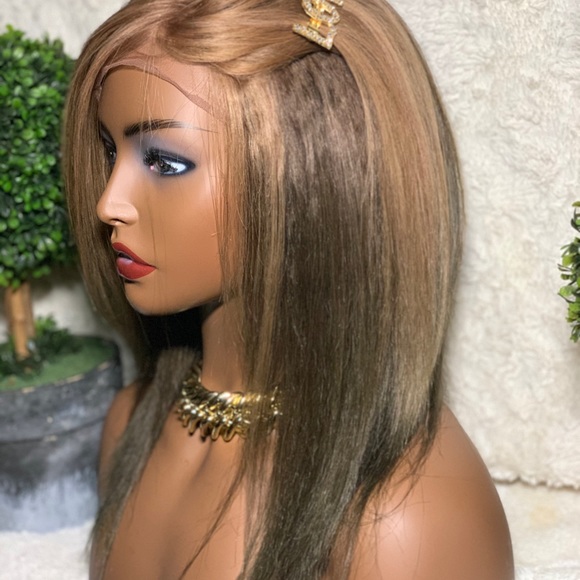 100% Human HairFull Lace WigBlonde and light brownAdjustable straps in the back. Naturally Dries curly.Brand New, No Tags