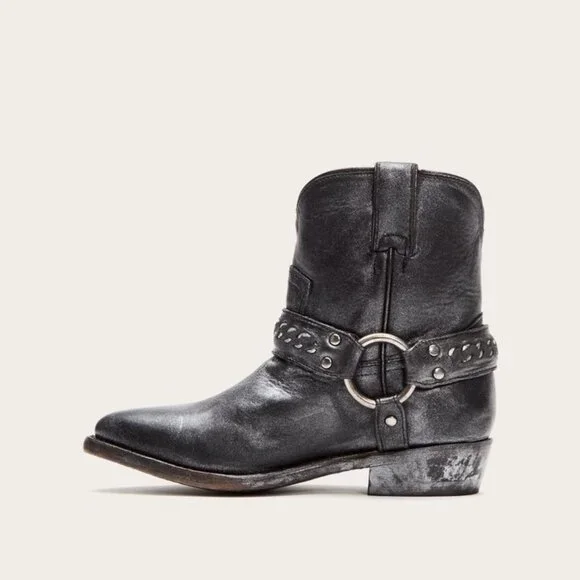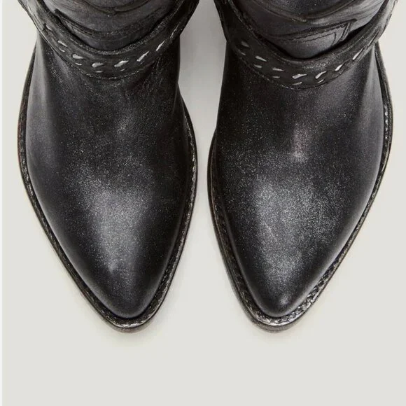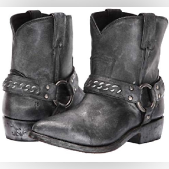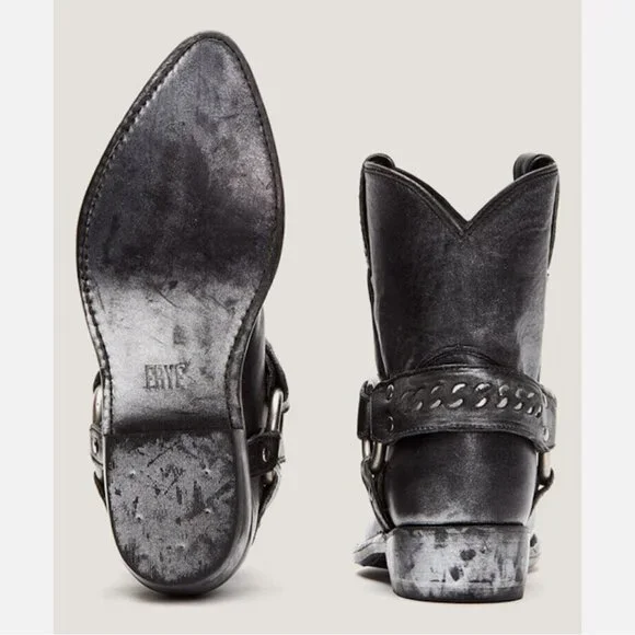 Frye Billy Chain Black Multi Metallic Short Harness Cowboy Boot Size 6New without original boxThis boot is all about the leather. Beautifully handcrafted, clean lines, sleek...
