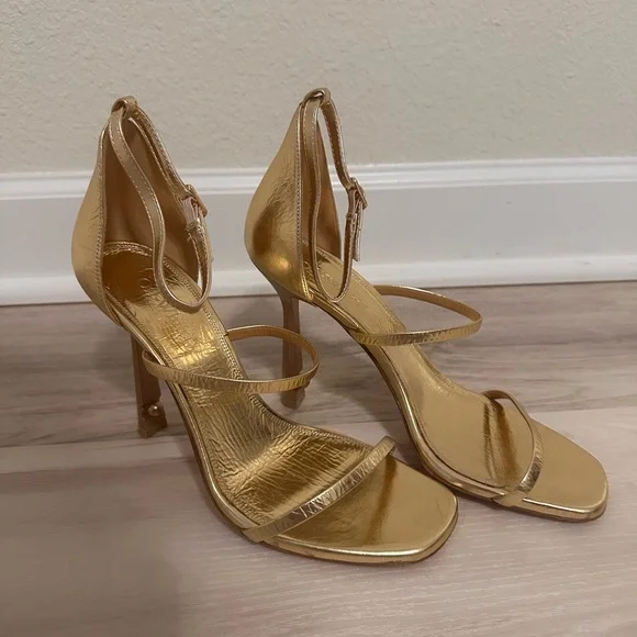 Off-White Lollipop Strappy Heel Sandals Gold Womens NWOT or box!