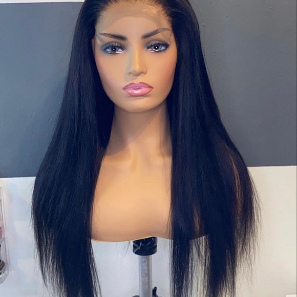 Pre-plucked 180% Density Indian Straight Human Hair Wig with Bleached Knots on HD Transparent Lace. As seen on the pictures. This wig is ready to be worn. Just pop it on and go! I can dye the hair any color on demand.