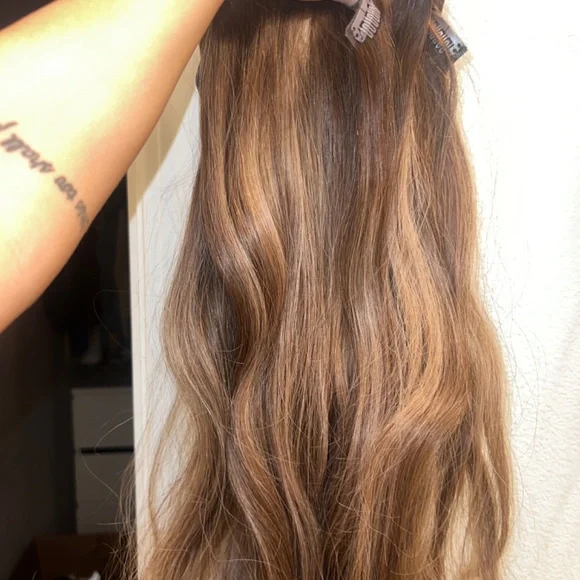 Hardly used 22” hair extensions. Wore only a couple times before I lightened my hair and could not wear them any longer. In great condition! Bought for $385. Selling for $300 OBO