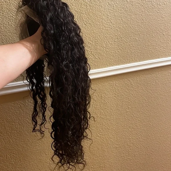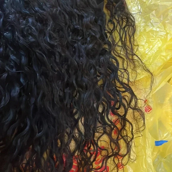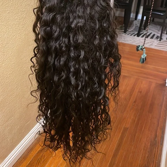 Soft quality long curly hair human hair wig.