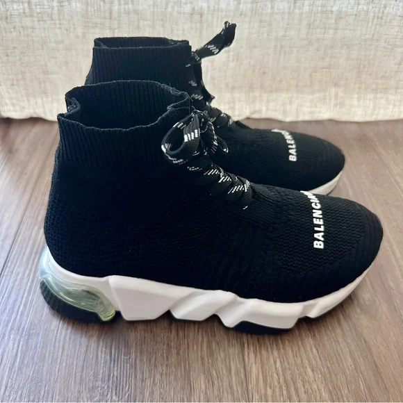 Balenciaga Speed Knit Socks Lace Up Logo Sneakers Black Size 35 / 5