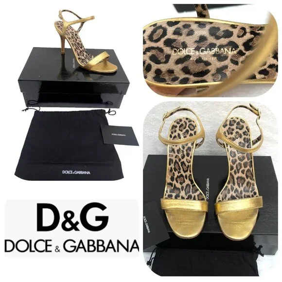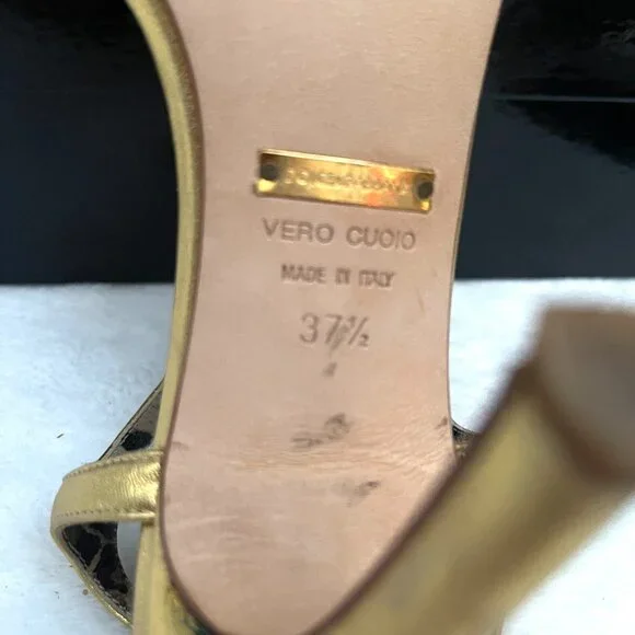 Authentic with original box, dust bag and papers. Dolce & Gabbana Metallic Gold Leather Ankle Strap Strappy Pumps Sandals 7,5. Made in Italy, grate vintage condition.- worn only 2 times- SCUFF ON HEEL -see last pic( price reduced), inspect the pictures for condition, as a part of description! Ask questions! Smock and pets FREE home! Check out my other listings to bundle & save!