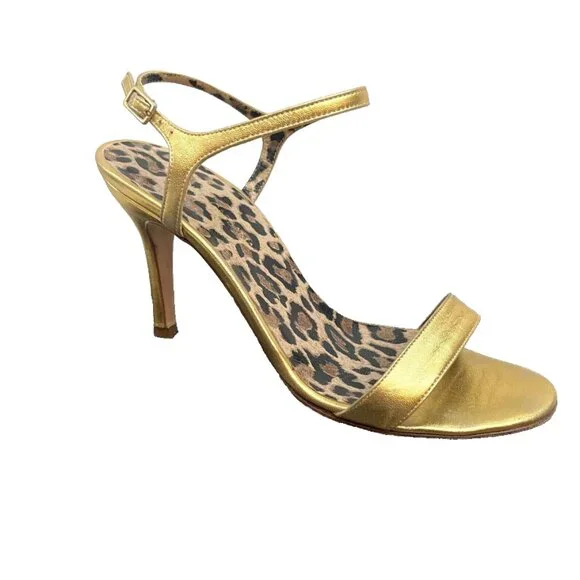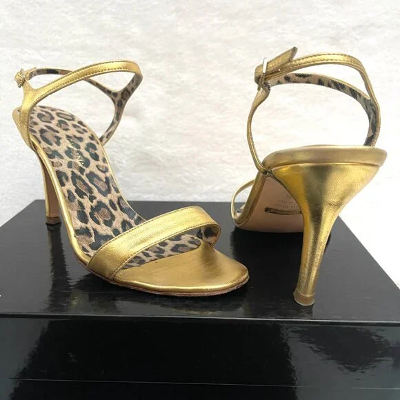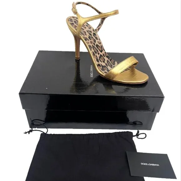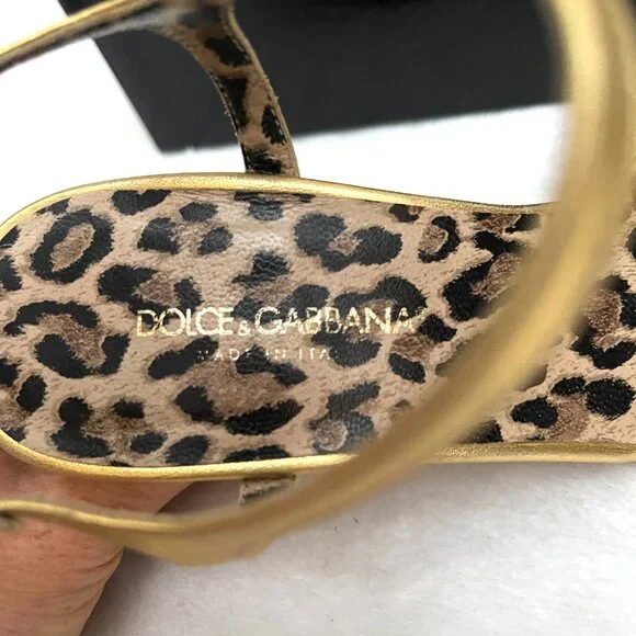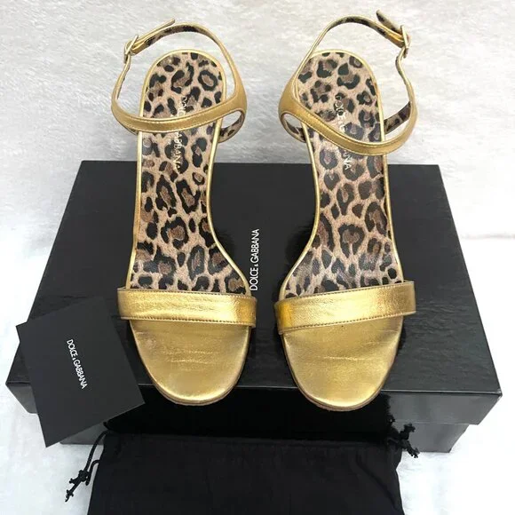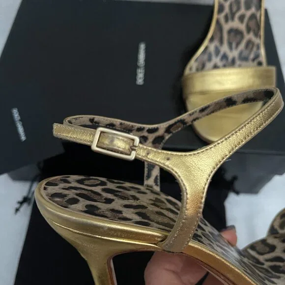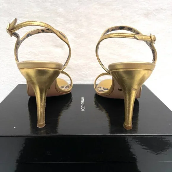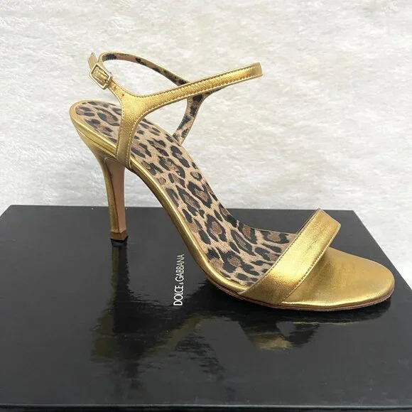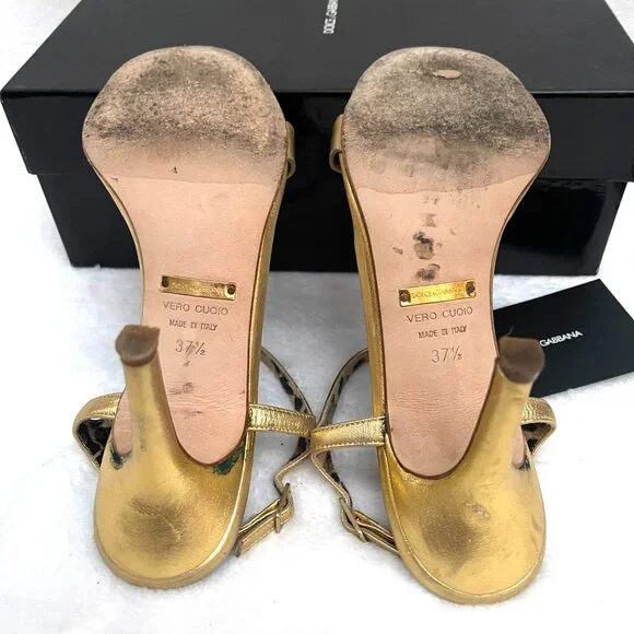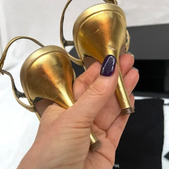 Dolce & Gabbana Metallic Gold Leather Ankle Strap Pumps Sandals 7,5