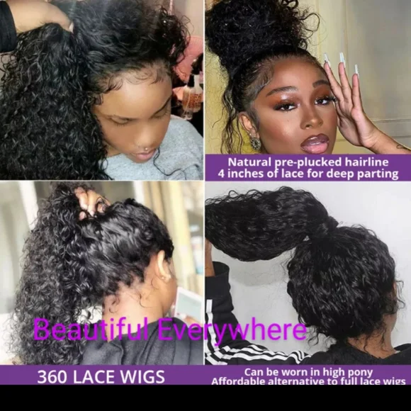 %100 Unprocessed Virgin Curly, Malaysia Human , Hair .360 Lace Wig.. , Pre-Plucked With Baby Hair,( Natural Hairline,)Cuticle are In Tack,Full (%180 Density)No Split Ends, tangles,shedding Or Matting Lace around Entire Unit /360) Hair Is Virgin,So It Can Be,Permed,Dye,Color and BleachedMadeline, 28- 30inches With Long Soft Gorgeous Curls Easy To Maintain.Malaysia Hair Look Very Natural With A pretty Sheen! Baby hair & Lace around The Entire Unit,.High Pony tail,/High Bun. She Can Be Parted In The Middle,Side Part,Half Up, Ponytail. There So Many Different Ways You Can Style Her, That Is Why A 360 Wig So Special!28 inches- 30inches%100 Human Hair With No Synthetic Fibers12A Grade Hair Is Very Good Hair & Will Last Several Years†**** I Been Selling & Wearing Hair Over 15 yrs. MyCustomer Being Happy With There Purchase,Is Everything To Me