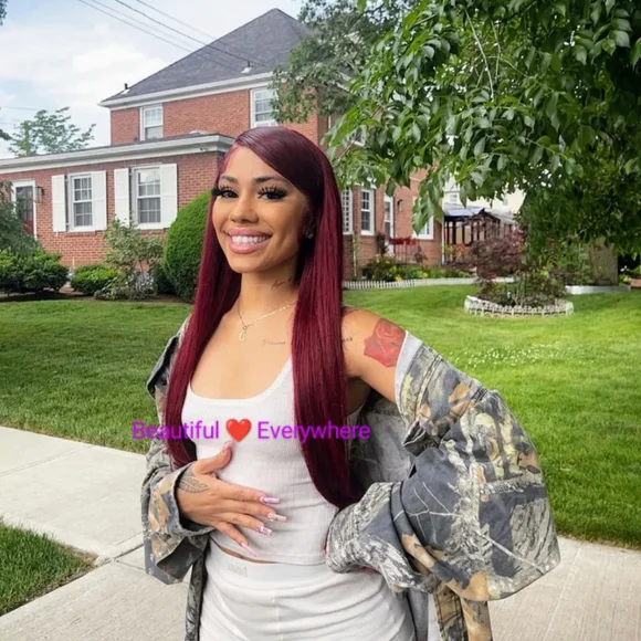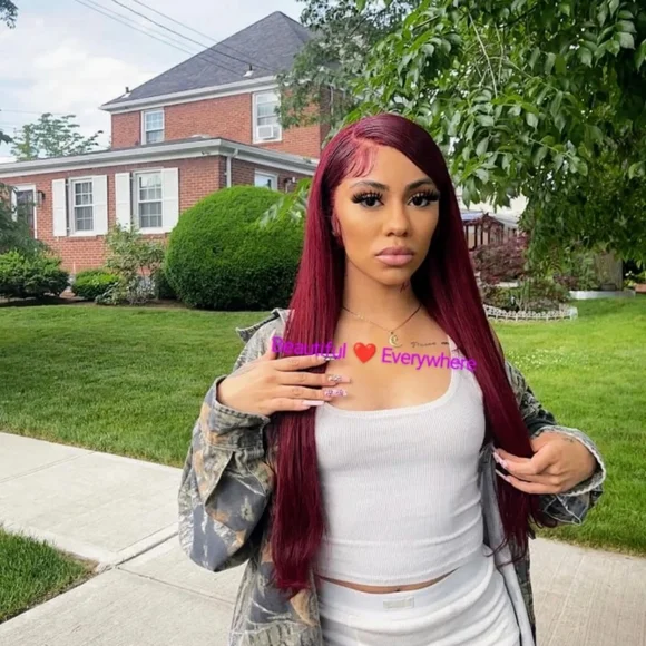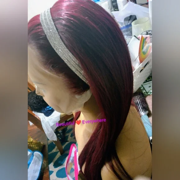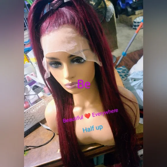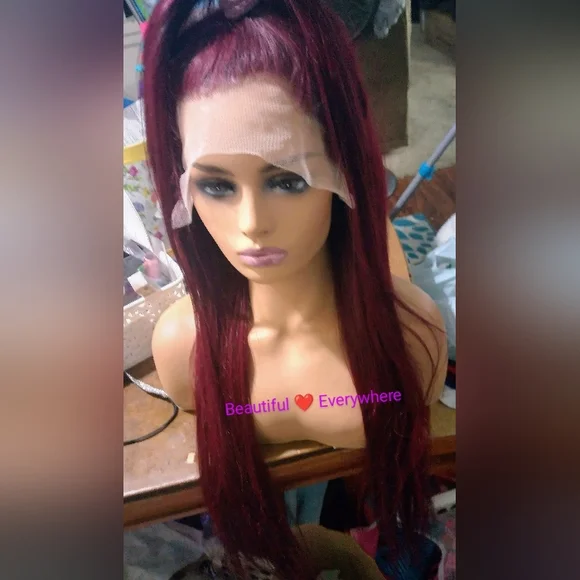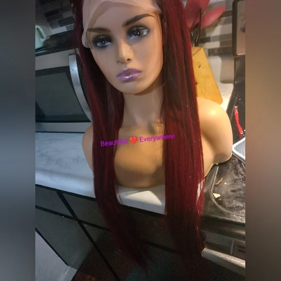 %100Malaysian Straight Human Hair Lace Wig. Pre Plucked with Baby Hair Natural Hairline Ear to EarHD lace(13x4) 32inchesDeanna, Is Beautiful , Burgundy Very Soft &Long, Natural Hairline. FullDensity (180%) Malaysia Hair is very natural With A Pretty Sheen.You can wear it half up,part in the middle or side part, and there are so many different ways you can style this unitNosheddingtangle-or matting . can be dyed, permed,Colored and restyled as your own. 32inches**%100 Human Hair With No Synthetic Fibers*12A Grade Hair,Very Good Hair Will Last You Several Yrs.