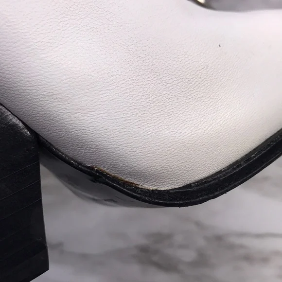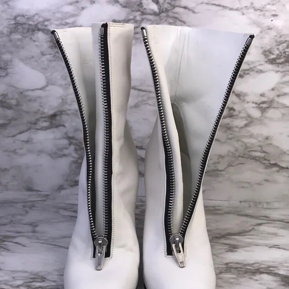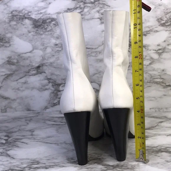 Step out in style with these chic white zippered ankle boots. Perfect for any occasion, these boots offer both comfort and elegance. High fashion Authentic Pre loved Condition Great Condition Please check the picture for details and measurements Some signs of wear, picturedSold as picturedClean, smoke-free/Pet homeSame day shippingI accept reasonable offersQuestions prior to purchase welcome