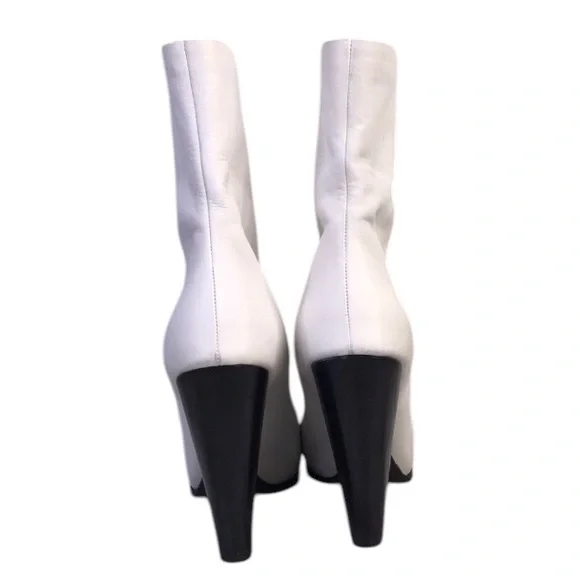Celine Paris women’s White Leather Front Zipper Wedge High Fashion Ankle Boots38