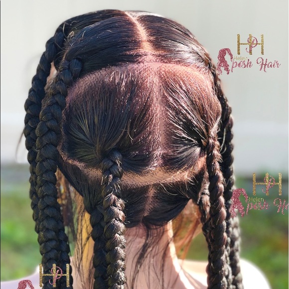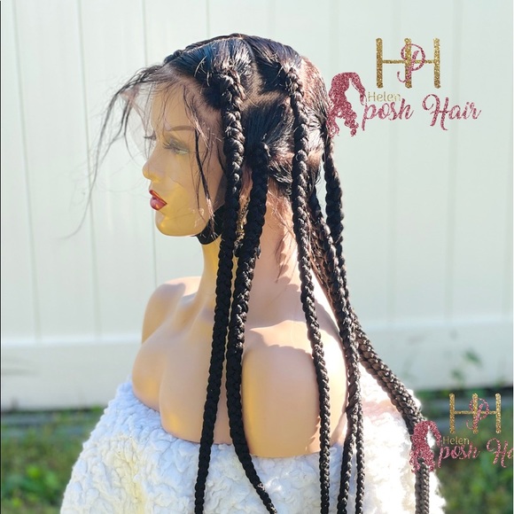 This is a jumbo box braids on a full lace wig, comes with elastic band. 37 inches