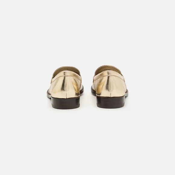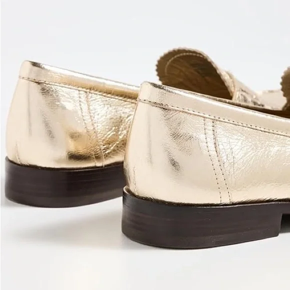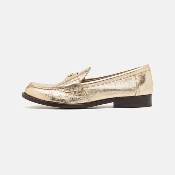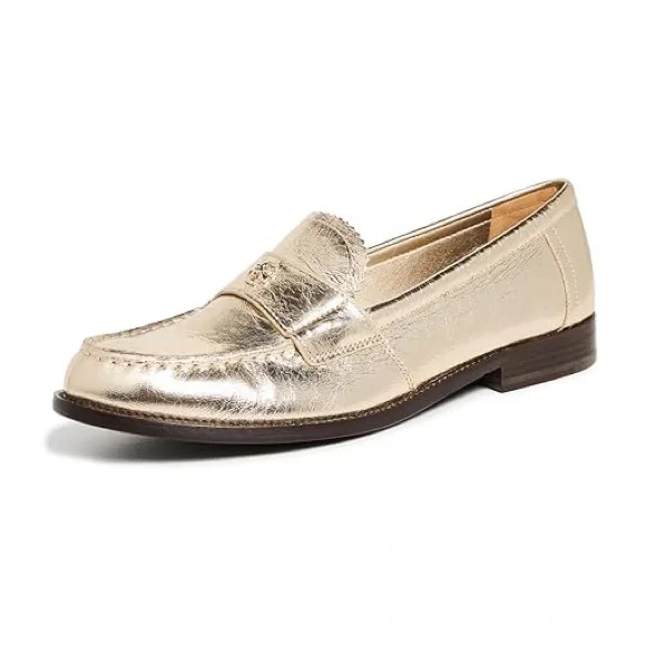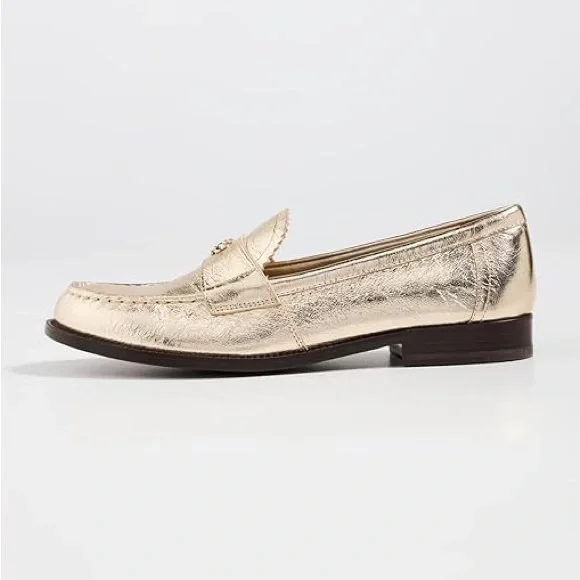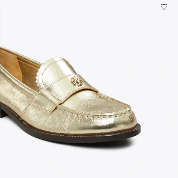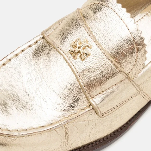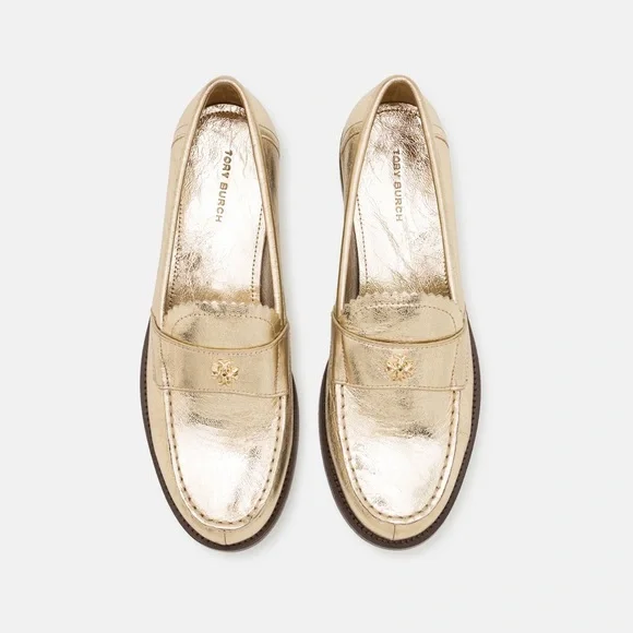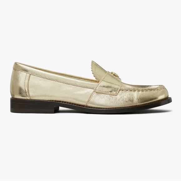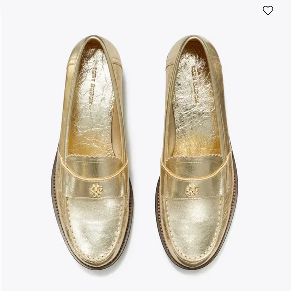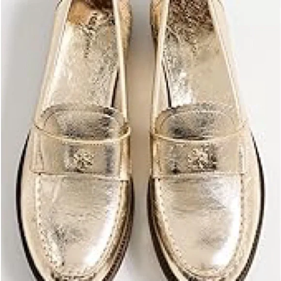 NWT Tory Burch Women’s Metallic Gold Classic LoafersColor: Sparkling Gold Platinum 250Brand new in the box!!Size Available:6 & 9Shimmering gold loafers by Tory Burch. Sleek design with signature logo detail. Ideal for chic, everyday wear.Features:Metallic leather upper Metal logo charm Cushioned leather footbed Napa leather lining Buffed leather sole Dust bag included LoafersStyle Number 155430The Classic Loafer by Tory Burch is made from goatskin leather and features a moccasin seam detail. It provides a soft, shiny leather finish and suits formal events well. Tory Burch, founded in New York in 2004, is known for its quality craftsmanship and American sportswear influence.A timeless silhouette is updated with scalloped edges and a delicate Double T. Understated and elegant, our classic loafer is crafted in metallic leather.Crafted in partnership with a Leather Working Group-certified tannery, supporting high standards in leather manufacturing and chemical management.