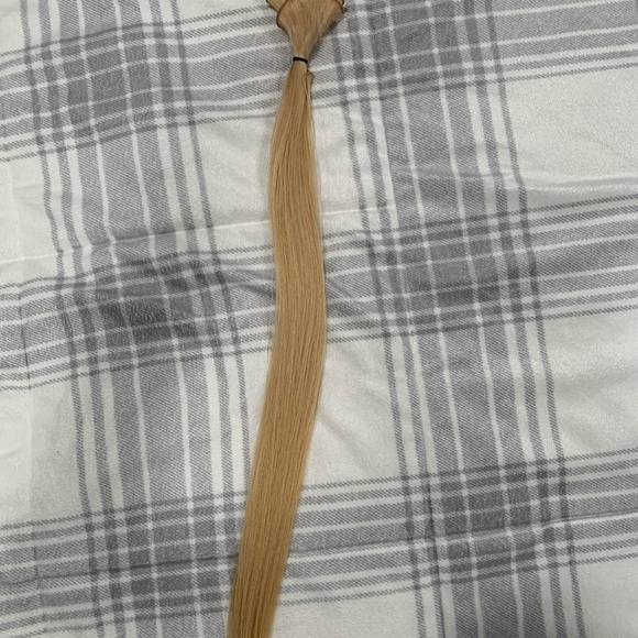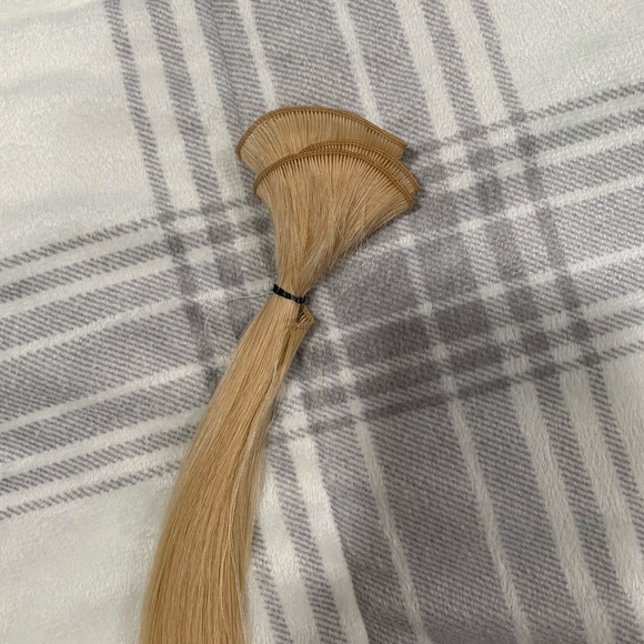 these are REAL human hair wefts! they have only been worn for a month! super cute and are about 18inches long! shown in the picture are the ones not currently in my hair! so i did not get them all installed! waiting to see if people are interested before i get them removed! so not all of the extensions are shown in the picture!