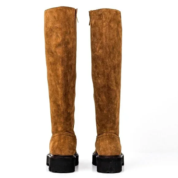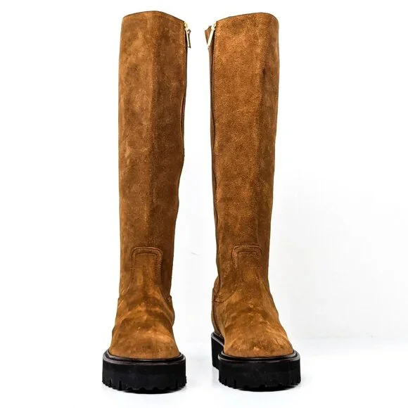 Aquatalia Women Sheya Wheat Suede Zip Weatherproof Riding Boots size 6.5