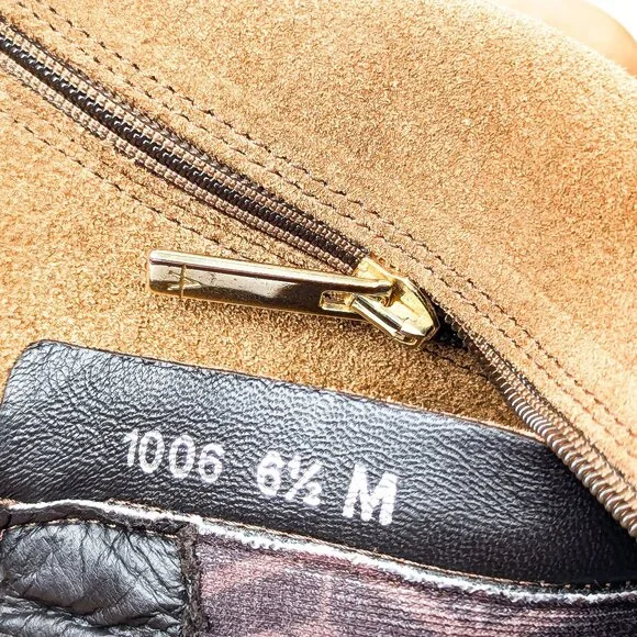 New Condition. No signs of wear on the soles. Never Worn. Made in Italy. Narrow Fit around the toe box and ankle. Runs small fit a size 6 Narrow fit. Not ideal for medium or wide fit. Model # Sheya. Retail $149. Leather Upper, Fabric Lining and Rubber soles. Side zipper style for easy on and off. Round Toe. Please check photos carefully for more information and details. SKU#9496Specs• Leather Upper• Fabric Lining• Rubber Soles• Riding• Knee Height• Made in Italy• Boots for women• Waterproof• Easy to put onSize: Womens 6.5Measurements:Heel Height 1.5 inShaft Height 16.5 inCalf Circumference 13.125 inFoot Width 3.5 inCondition: New Without TagsThe side zipper ensures easy wear, while the round toe adds a classic touch. In new condition with no signs of wear, these boots run small and have a narrow fit, making them ideal for size 6 with a narrow foot.