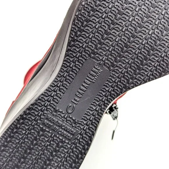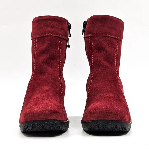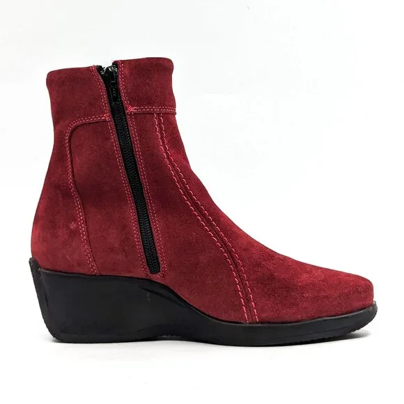 La Canadienne Women Tina Red Suede Wedge Ankle Zip Boots size 7