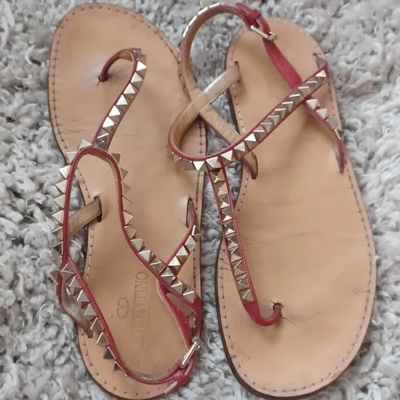 Pre owned Loved ,Valentinosandals Wear soles and heels/while resolved, they will shine again,No studs missing All straps attached