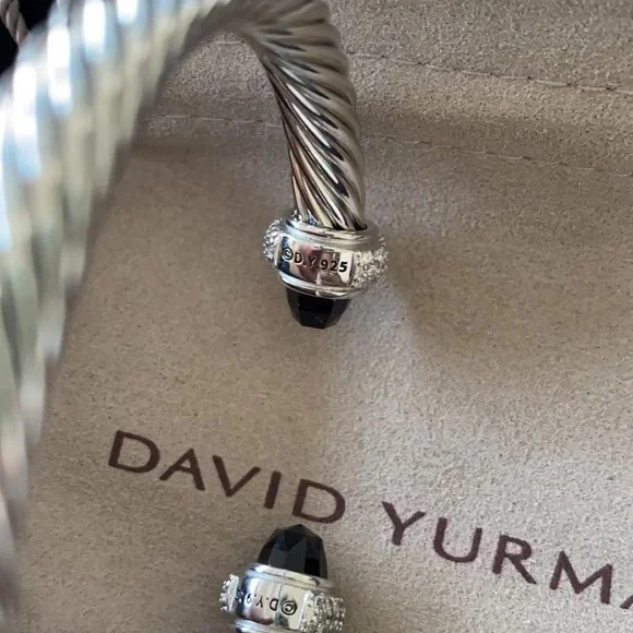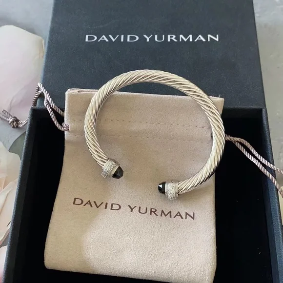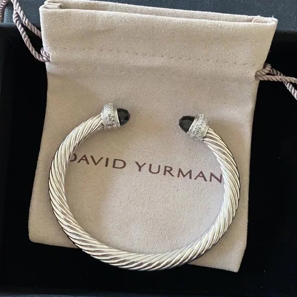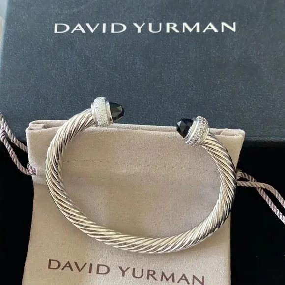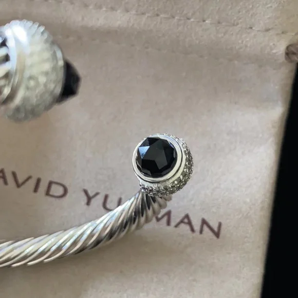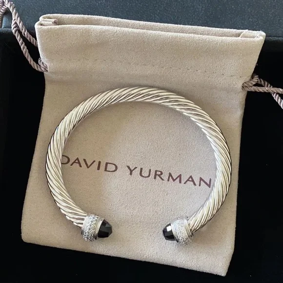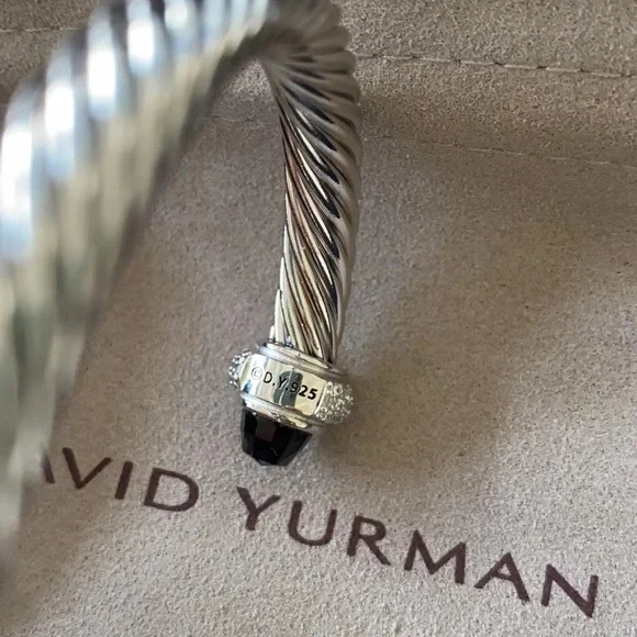 Elegant David Yurman silver cable bracelet featuring black accents. Perfect for any occasion.