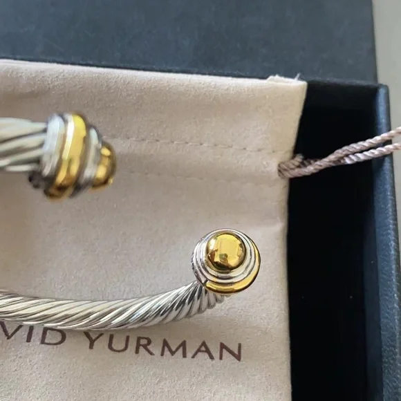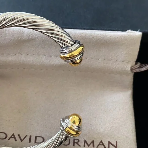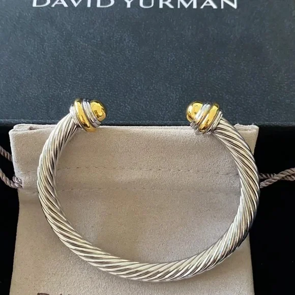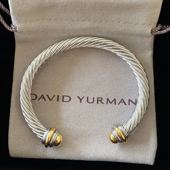 Elegant David Yurman bracelet featuring a stunning silver cable design with gold accents. Perfect for adding a touch of luxury to any outfit.