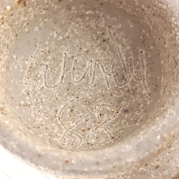 Stone Pottery Rabbit Bud Vase Stoneware Glazed Bunny Natural Mini Urn *SIGNED* by hobbyist "Wendy" dated 1988. Such a sweet beautiful piece.