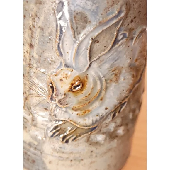 Stone Pottery Rabbit Bud Vase Stoneware Glazed Bunny Natural Mini Urn *SIGNED*