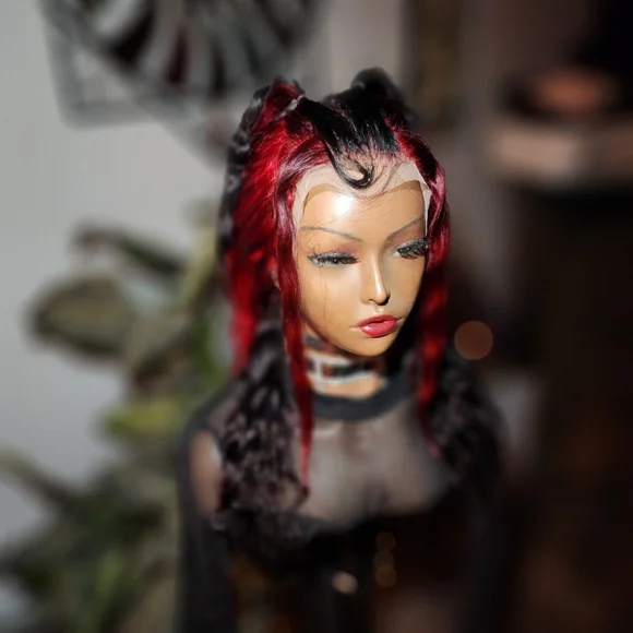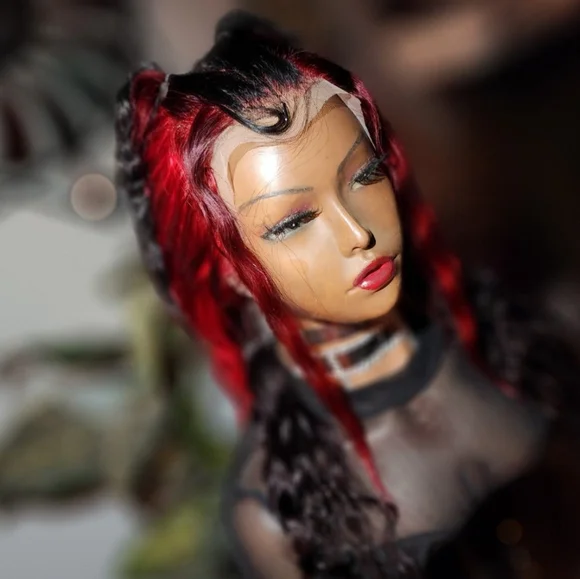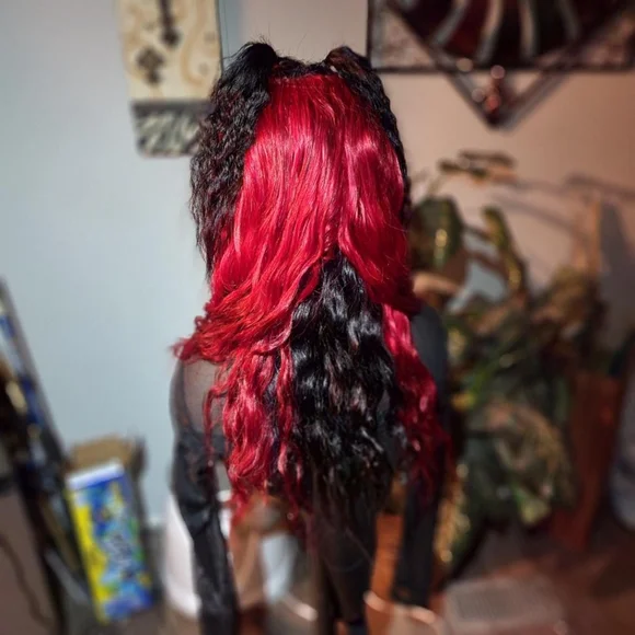22inch split custom colored peekaboo red and black 13x4 han hair lace wig