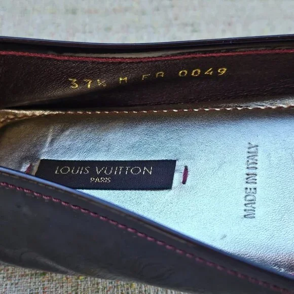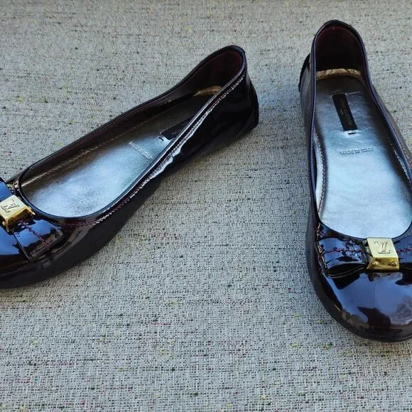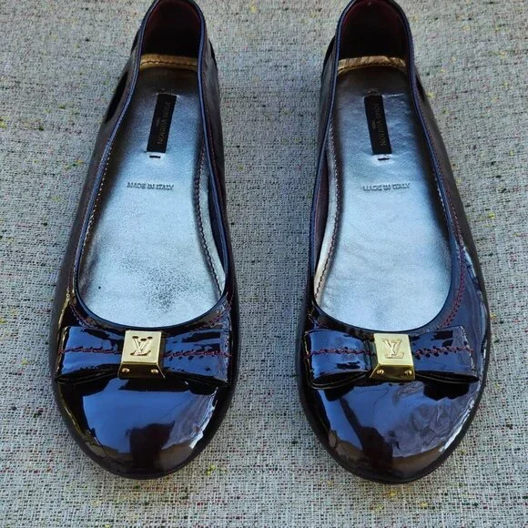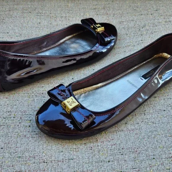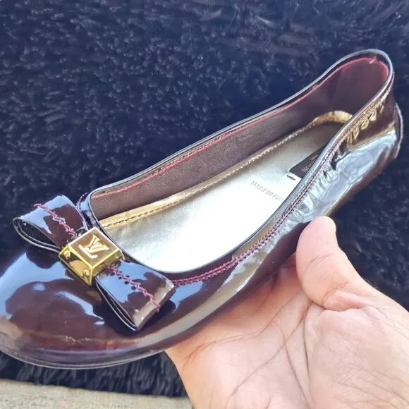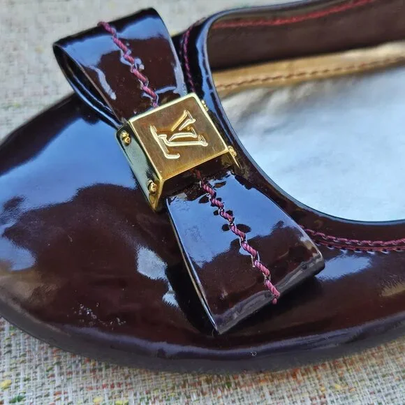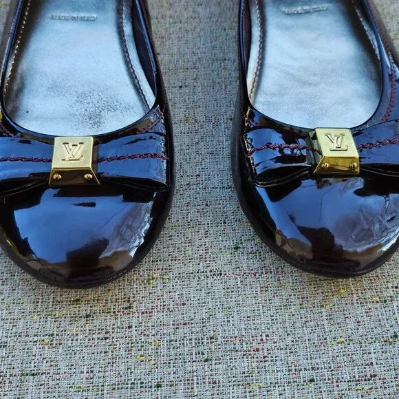 Louis Vuitton Women Flat Ballet Brown Patent Leather Shoes Size 37.5 Made ItalyBrand: Louis VuittonMade in ItalySize: 37.5EU (7US)Color: BrownPre owned: Excellent condition. only there is 2 damages dot on one pair shown in the photos. no box. shoes only100% authentic