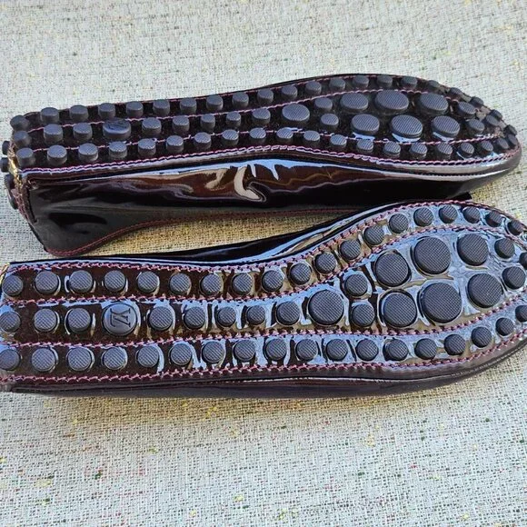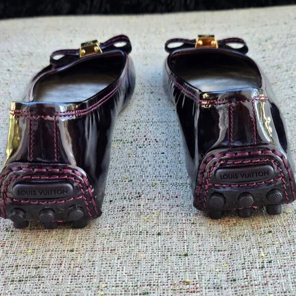 Louis Vuitton Women Flat Ballet Brown Patent Leather Shoes Size 37.5 Made Italy