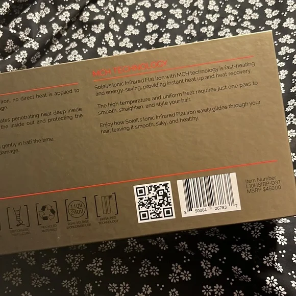 Brand new infrared flat iron. Color: marbleThis flat iron is amazing it helps restore damage hair and have long lasting hair results