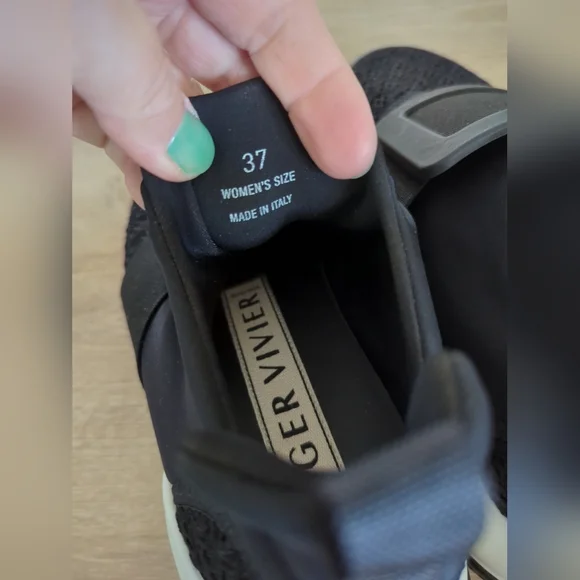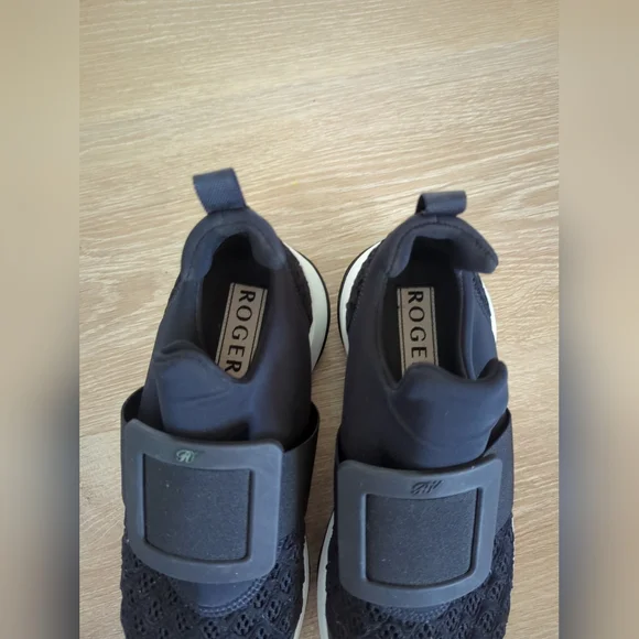Gently usedThe ROGER VIVIER Viv Run Fabric Black White Sneaker in size 37 is a stylish and comfortable athletic shoe designed for women. The pull-on closure and low-top shoe shaft style make it easy to wear, while the rubber outsole provides durability. With a sleek black color and buckle accents, this sneaker is perfect for casual occasions year-round. The polyester upper material and leather insole ensure quality and comfort, making it a great choice for both fashion and functionality. Made in Italy, this designer shoe from Roger Vivier combines luxury and sporty style in one versatile design.B622