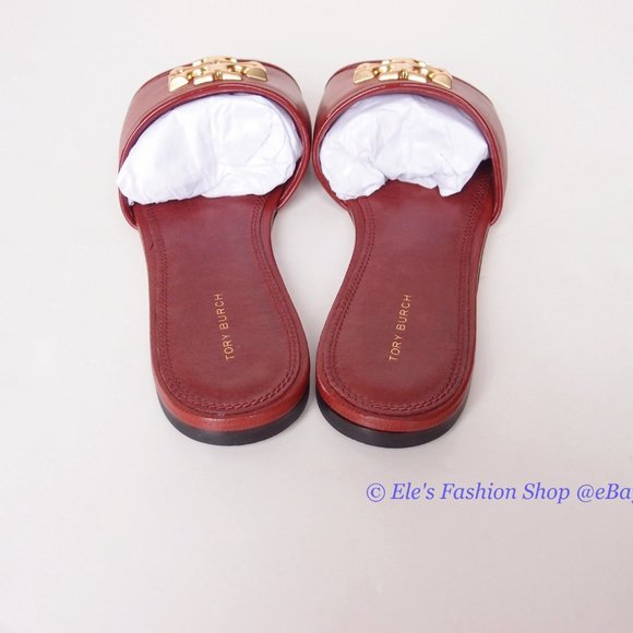 New in Box Tory Burch Eleanor Leather Slide - 100% Authentic Guaranteed! Color: Rust BrownBrand New in Tory Burch box, never been worn, comes with dust bag!Slip-on style.Leather upper.Leather lining.Leather outsole.Price is firm! Sorry, no offers, no trade.Check out ourboutique (5-star Top Rated Seller) for more New, Authentic Tory Burch shoes in all kinds of colors and patterns~