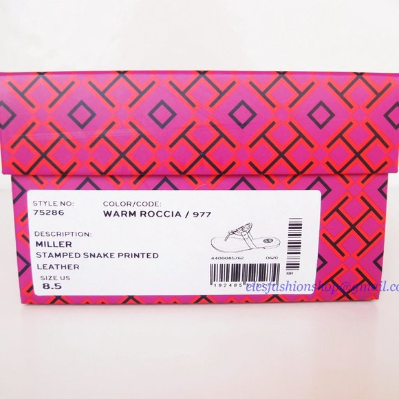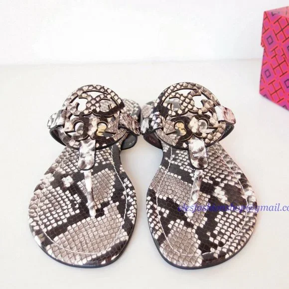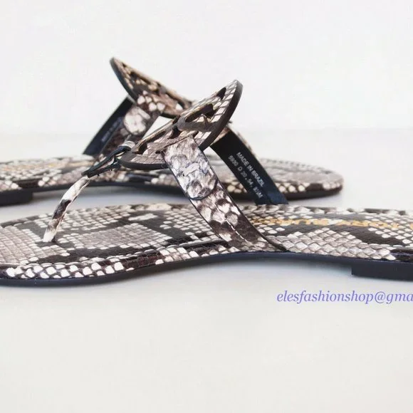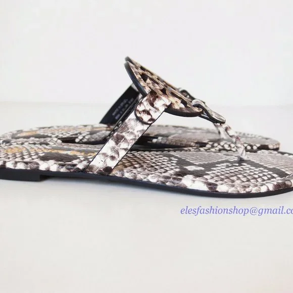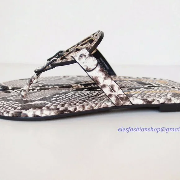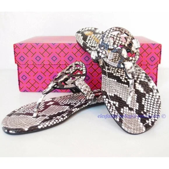 New in Box Tory Burch Python Embossed Leather Miller Flip Flop Thong Sandals - 100% Authentic Guaranteed! Color: Warm RocciaNew in Tory Burch box, never been worn, comes with Tory Burch dust bag!Open toeSlip-on styleGenuine leather, snake pattern embossedLeather upper, leather liningRubber soleSalon shoesPrice is firm! No offers, no trade, thanks!From smoke-free, pet-free home.Buy with confidence! All items in our boutique are 100% authentic guaranteed!Check out our boutique (5-star Top Rated Seller) for more New, Authentic designer handbags, shoes and coats!