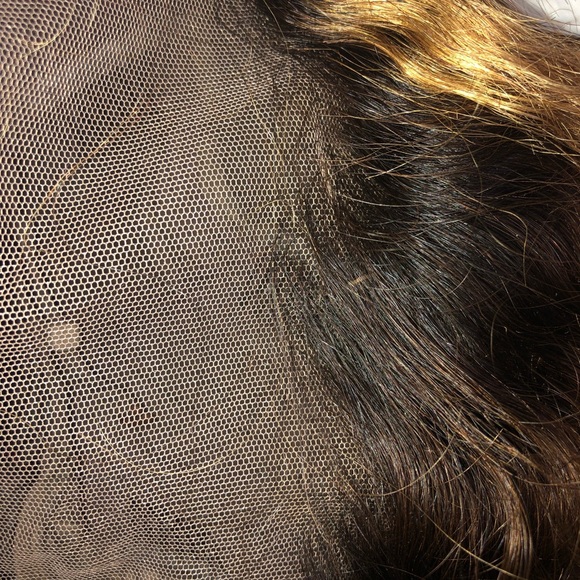 Honey Blonde with Streak Deep Wave lace front Human hair wig