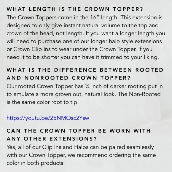 Never used Hidden Crown Blonde Hair Topper.100% Remy hair. 12 inches.Purchased because of hair loss after Covid 19 in December 2020.Hair grew in and is now Grey.Paid $500 for sale $350