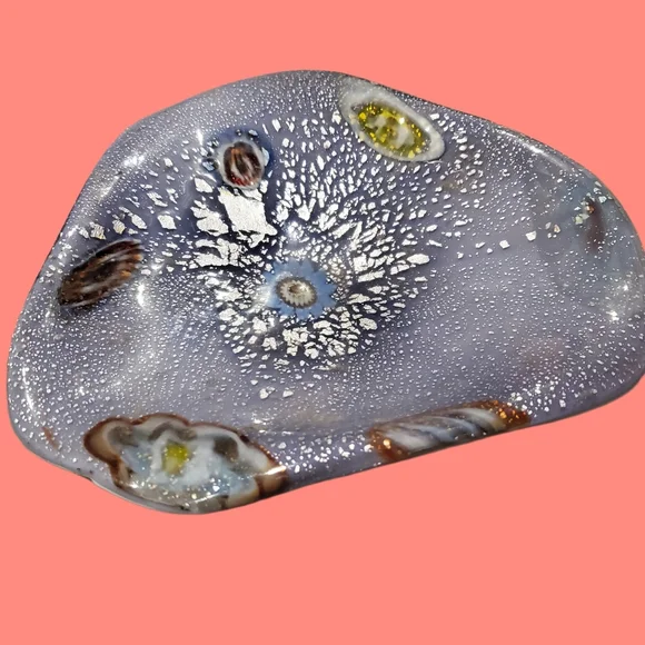 MURANO GLASS Vintage Tutti Frutti Silver Infused Trinket Dish in Lilac
