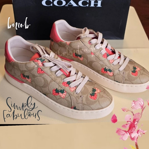 Step out in style with these Coach sneakers featuring a playful strawberry print. Perfect for adding a touch of fun to any outfit.Brand new as seen as viewed as photoed.The shoes...