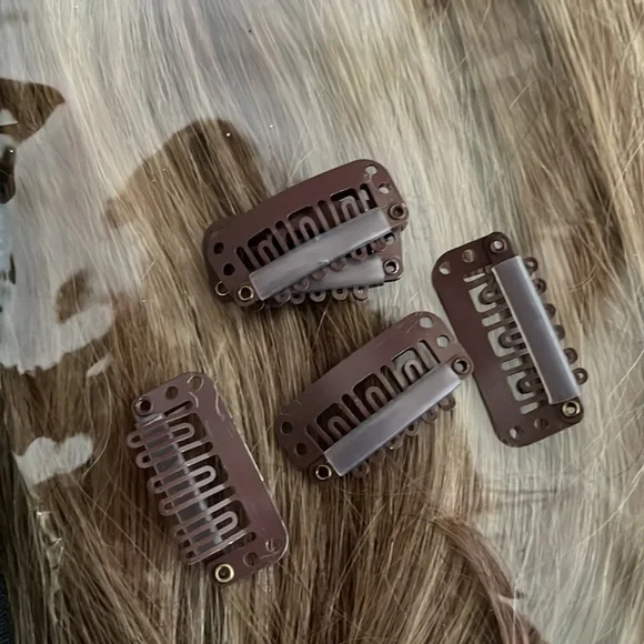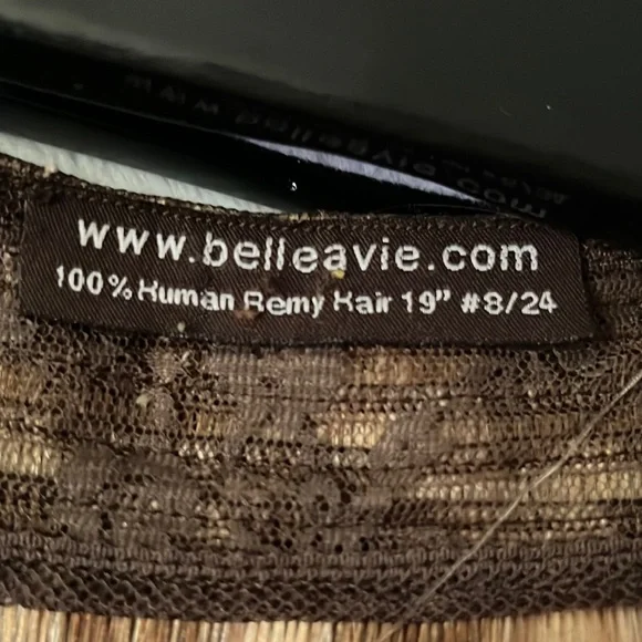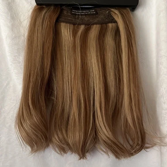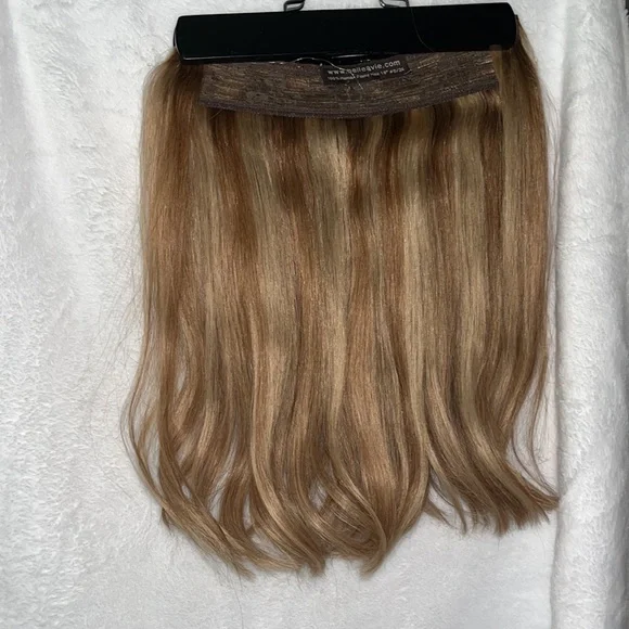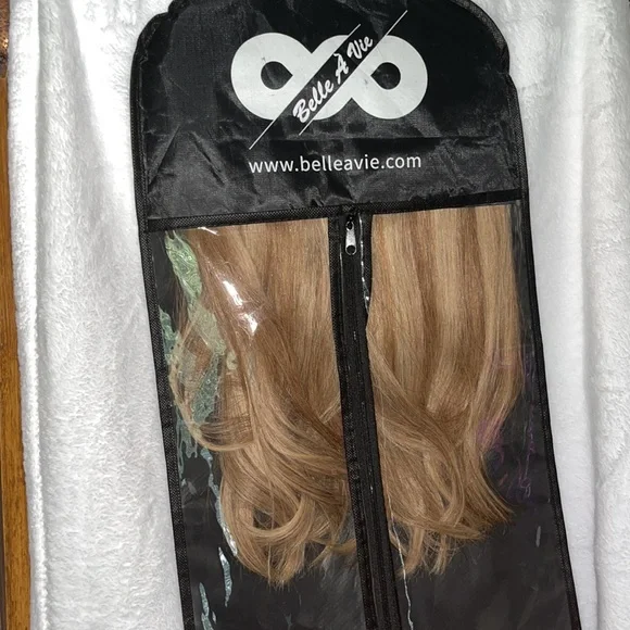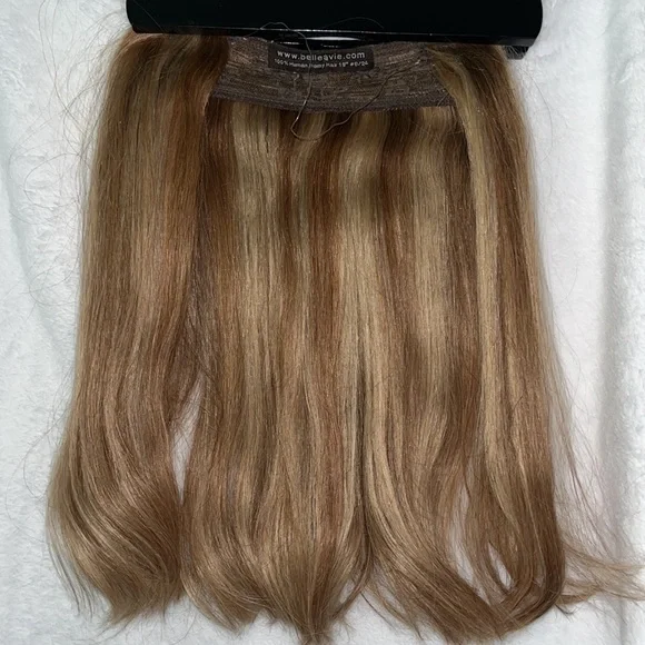 Belle A Vie human hair extension. This piece is beautiful and can be styled anyway you like. Does come with the fish string and 5 clips to keep hair in place. Hair is in perfect condition.