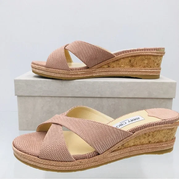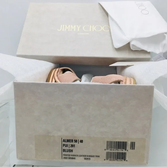 Jimmy Choo- ALMER 50 Blush Printed Nubuck Leather/ W Braid Trim Women’s Slide Size EU 40 US 10 Medium.New with original box, dust bag is not included.