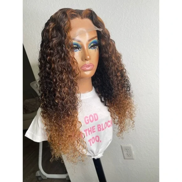 “God spins the block too”Monica is a 20” Luxury Jerry Curly unit styled with highlights and ombré color. Monica is quite versatile! She can be worn as a side or middle part and can worn half up, half down. This unit is hand constructed with 3 Bundles of Jerry curly bundles, and a 4x4 closure. Adjustable straps are added for extra security. If maintained properly, this unit will last you 3+ years. What you´ll Love:Glue-lessCan be worn as a middle or side part or ponytail.Beautiful curlsCan be colored, bleached, or dyedLight-weight.Great for Protective Styling; No Leave-out Necessary.Low-maintenance.Will last up to 3 years or more with proper care.