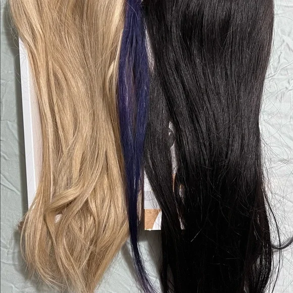 Human hair extensions. Blonde 18 inches and brown 22 inches. Worn once.