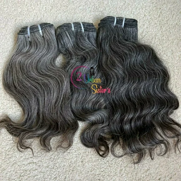 NATURAL WAVY- 100% Authentic Raw Virgin Indian hair. Each bundle is beautifully unique with a natural wavy pattern and comes from a single donor. Patterns will vary from bundle to bundle since all our hair is 100% natural and non-processed.100% single donor RAW virgin hair sourced directly from the temples in India.Will last you for YEARS with proper care!100% guarantee no steam processing, and never mixed with synthetic or animal hair!All cuticles are intact and aligned, which eliminates tangling.Very minimal to no shedding.Cut, color, curl or straighten. Treat it like real hair, because it is real hair!Each bundle is 100 grams (3.5oz)Each bundle is unique and has its own distinct natural wavy pattern.Perfect for sew-ins or making your own clip-ins.Highest quality possible!PLEASE indicate if you want the salt and pepper bundles on a regular natural black